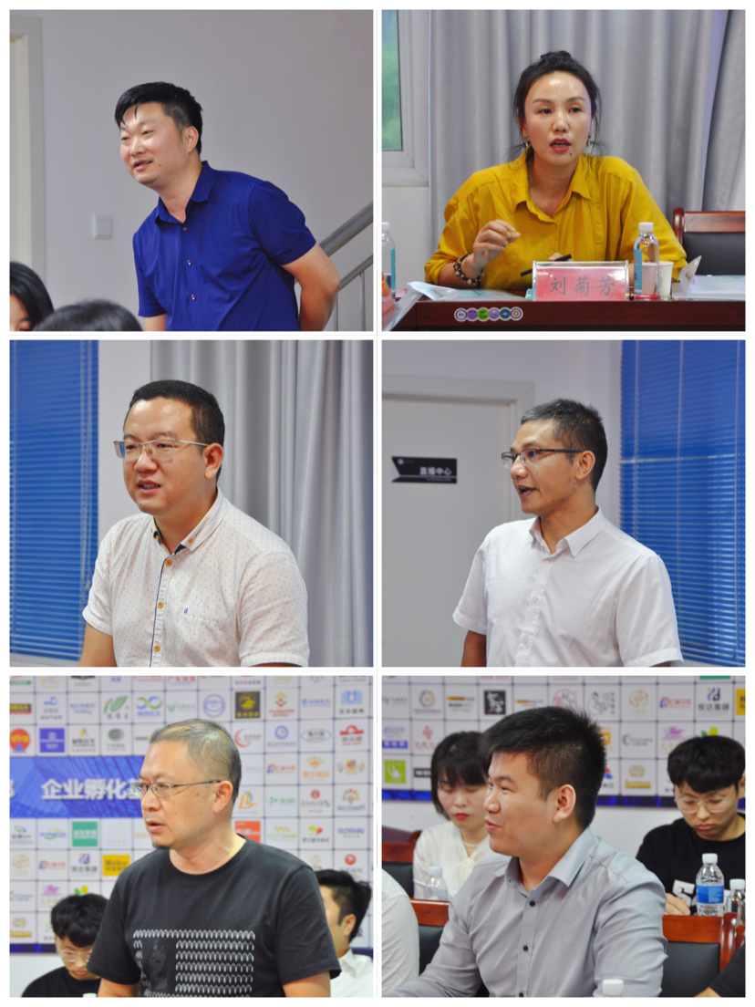 参观结束后,大家在企业品牌产品展示中心二楼会议室进行了座谈交流。状元鸿粥餐饮连锁王提、小猪配菜创始人赵子路、河南康康食品有限公司康叶茂、元化集团张珂嘉、企业品牌产品展示中心主任李锋等分别结合各自专业领域和创业经历,围绕企业创新、技术创新、服务模式、市场应用等话题进行了精彩而又务实的分享。