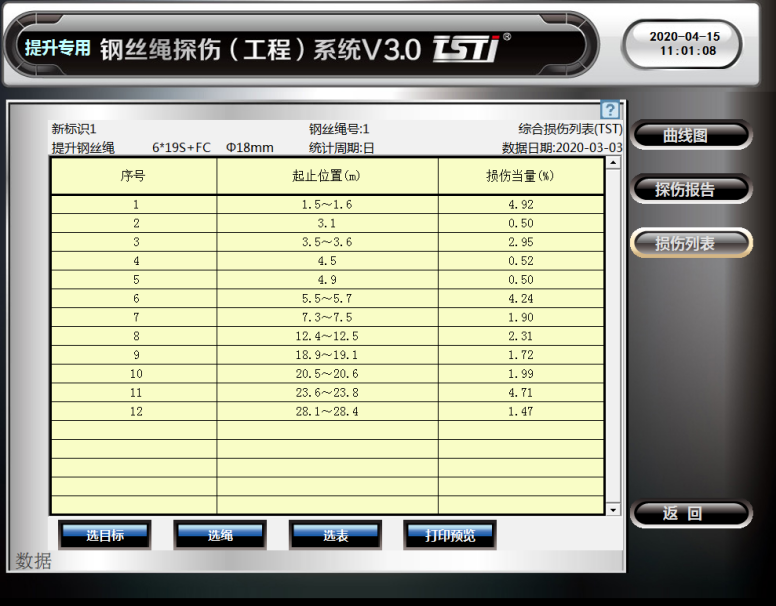 还可自动生成钢丝绳探伤报告和损伤列表,对钢丝绳进行全方位的评估。同时系统根据钢丝绳损伤程度具备三级报警模式,有效的守护钢丝绳安全。
