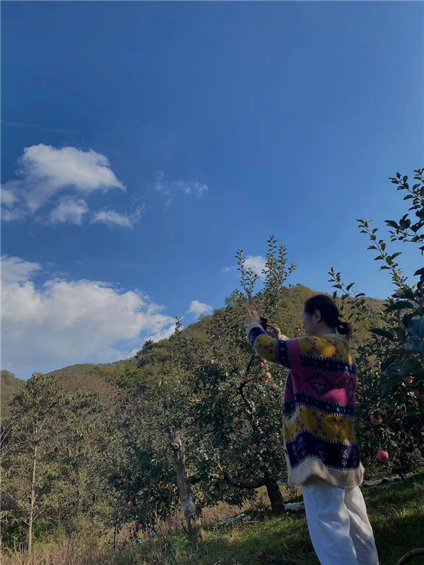 高海拔的条件,外加长时间的日照,使得当地的苹果肉质细腻、水分饱满、甜度充足,嚼在嘴里没有果渣,不愧是水果之王。快看这些小伙子们连摘都顾不过来,直接就地开吃了!