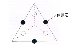 将6个柱状线绕式电感传感器,按正三棱锥三维空间形体配置,如图1所示。每个传感器作为正三棱锥的个棱边,各三角形平面由3个传感器尾相随顺序连成,利用正三棱锥体空间对称的几何点,形成各传感器之间既相互立又相互共用的相关关系。磁场信息属种空间物理场,能量集中表现于发生源(磁)附近空间,现行的感应线圈(环状)传感器和霍尔应(片状)传感器,只限于轴向(维)或面向(二维)采集,柱状线绕式电感传感器有明显的取向接收性,三维磁信息感应桥装置获得了空间多取向采集模式,如图2所示,可有完成对磁场信息的完整采集。
